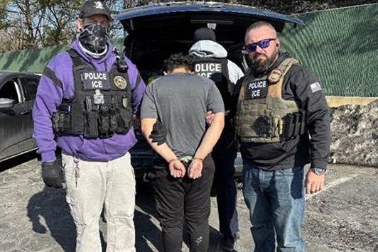 U.S. Immigration and Customs Enforcement released this photo of the Jan. 25 arrest of a suspected Salvadoran gang member in Hyattsville, Maryland.