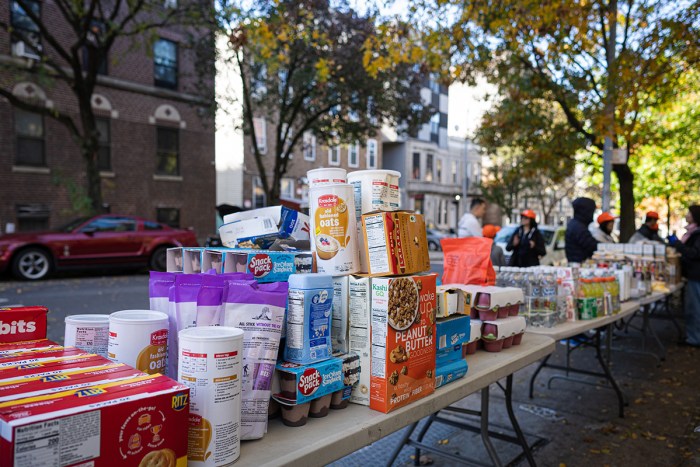 Food distributions like this one in New York City, as well as the food ministries of the Cathedral Church of Saint John the Divine, are finding ways to help people impacted by the loss of SNAP benefits starting Nov. 1. Partial SNAP payments are due to resume, but the date for that is uncertain. Photo: Steve Sanchez/Sipa USA via AP Images
