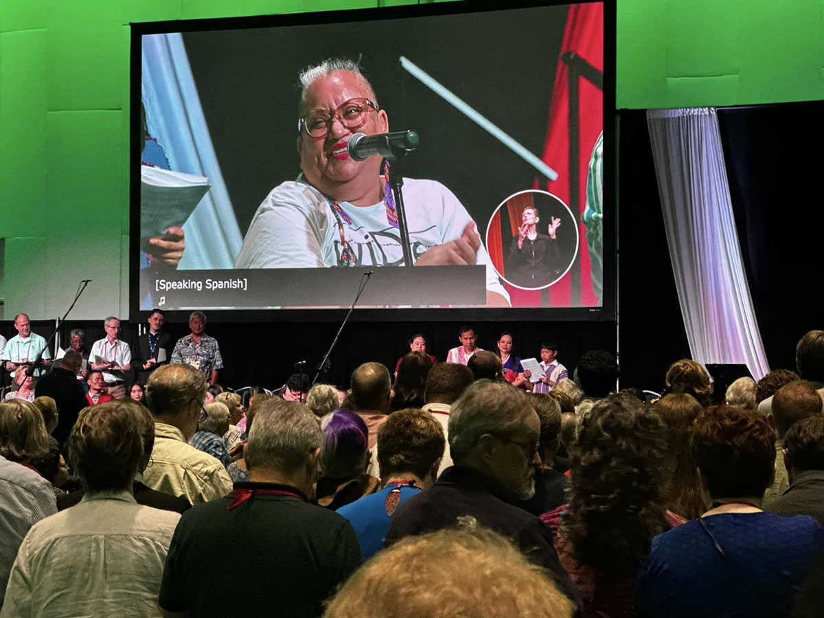 Sandra Montes, an Executive Council member, participates in a liturgy at General Convention in June 2024.