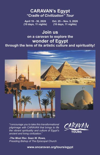 About these new pilgrimages to Egypt, The Most Rev. Sean W. Rowe, Presiding Bishop of The Episcopal Church, says, “Egypt is one of the ‘holy lands’ within our story of faith – a land that sheltered many, from Abraham to Moses and the Holy Family, to St. Mark and the Desert Mothers and Fathers. Led by experienced guides who know and love Egypt, I encourage you to take this transformational pilgrimage with CARAVAN that brings to life the vibrant spirituality and culture of Egypt’s ancient and living civilization.”