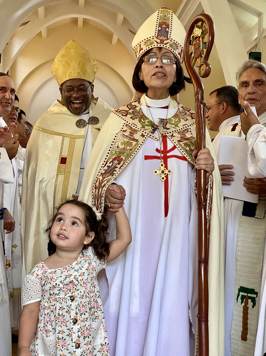 Cuba Bishop Griselda Delgado del Carpio holds her granddaughter’s hand as she and Presiding Bishop Michael Curry process out of Holy Trinity Cathedral in Havana. Photo: Lynette Wilson/Episcopal News Service