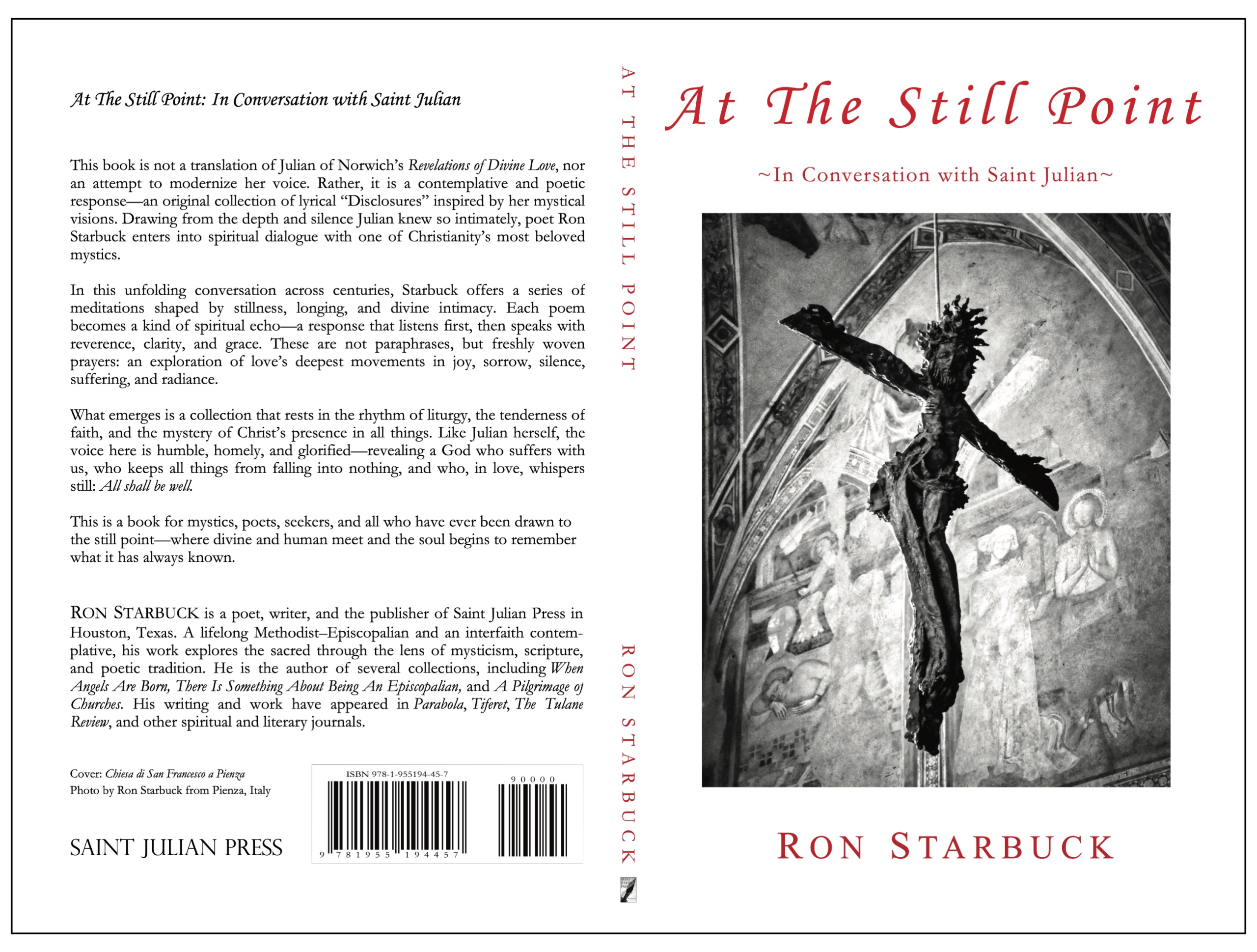 Ron Starbuck is the Publisher/CEO and Executive Editor of Saint Julian Press, Inc., in Houston, Texas. He is the author of There Is Something About Being an Episcopalian, When Angels Are Born,Wheels Turning Inward, A Pilgrimage of Churches, At the Still Point: In Conversation with Saint Julian,and You Are Accepted: In Conversation with Paul Tillich, and . His writing reflects a lifelong search for the sacred within everyday life, drawing upon Christian mysticism, Anglican and Episcopal Church traditions, interfaith dialogue, and contemplative practice.