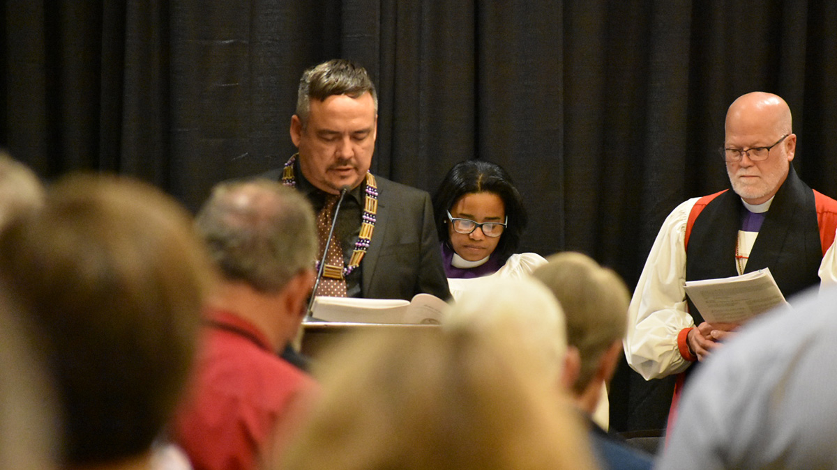 Allan Hayton reads the gospel passage Sept. 21 during the Eucharist on the opening day of the House of Bishops meeting in Fairbanks, Alaska. Photo: David Paulsen/Episcopal News Service