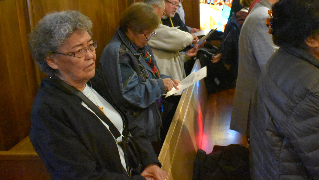 Irene Roberts, left, joins the congregation at St. Matthew’s Episcopal Church in Fairbanks, Alaska, in reciting the Lord’s Prayer in her native Gwich’in language on Sept. 24. Photo: David Paulsen/Episcopal News Service