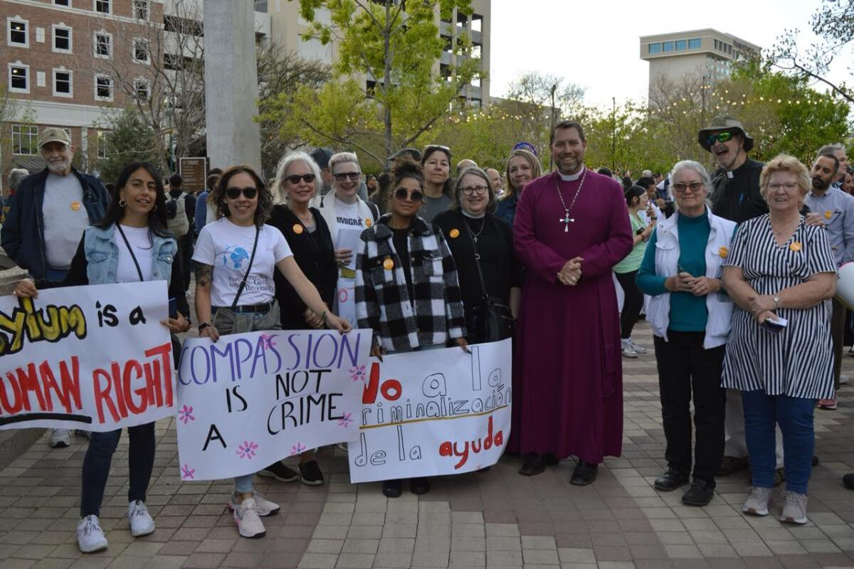 Supporters of immigrants from the Episcopal Diocese of the Rio Grande gather for the March and Vigil for Human Dignity in El Paso, Texas, March 21, 2024. Photo: Lee Curtis
