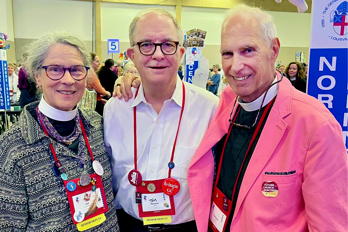 The Ven. J. Stannard Baker (right) joins Vermont deputies the Rev. Lee Crawford (left) and Tom Little at General Convention in 2024. Photo: Facebook